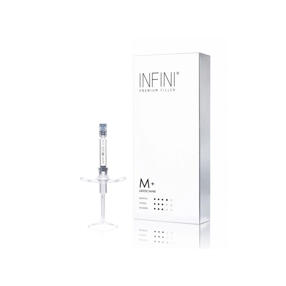 Az INFINI Premium Filler M+ LIDOCAINE egy térhálós szerkezetű hialuron-sav alapú lágy töltőanyag a lágyrészek térfogatának növelésére, ajakfeltöltésre és a közepes és mély ráncok korrekciójára.